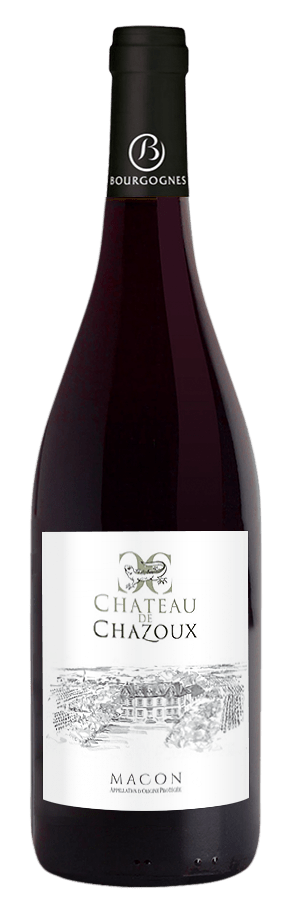 Mâcon rougeLe terroir du Château de Chazoux est particulièrement approprié à l’élaboration de vins rouges fruités et gourmands. Ce Mâcon rouge révèle des arômes variés mêlant fruits rouges et épices, typiques du cépage Gamay noir à jus blanc. Il accompagnera parfaitement vos charcuteries et fromages frais.